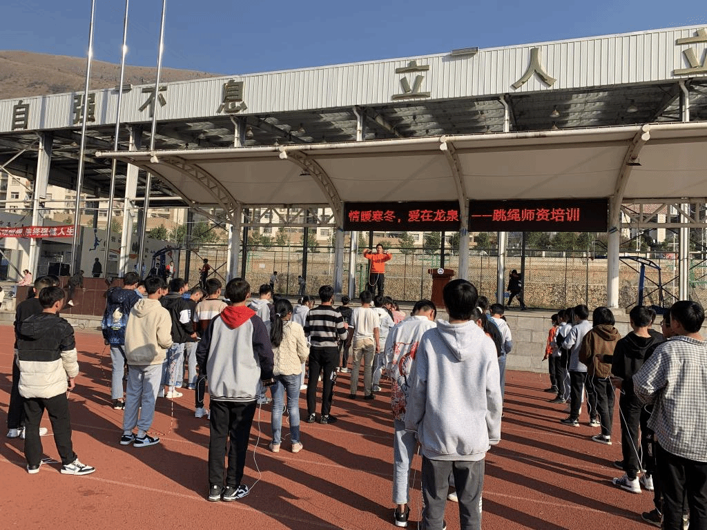 云南省中考体育改革后,体育成绩为100分,其中跳绳为必考项目。为提高龙泉中学的体育教育质量,437必赢会员中心体育学院2012届校友吴颖志特为龙泉中学捐赠1000条跳绳,并对学校各班级学生代表(体育委员、班长)进行跳绳培训。下午4时许活动开始,龙泉中学教学副校长王忠磊老师对吴教练的到来表示热烈欢迎。培训中,吴教练告诉学生如何判断适合自己的跳绳长度,在轻松愉悦的音乐下,吴教练指导了学生跳绳的脚步动作,经过半小时的培训,学生们掌握了跳绳的动作要领。此次活动后,学生代表们将会把学到的技巧分享到班级,让整个班级同学随着青春的旋律跳动。