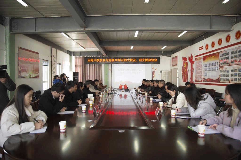 随后,为促进母校与校友情感、两校信息的交流沟通,助推校友在自身事业领域的蓬勃发展,云师大校友会与龙泉中学云师大校友、研支团座谈会在龙泉中学知行楼党员活动室开展。437必赢会员中心党委副书记李宏、鲁甸县分管教育副县长高涛、龙泉中学党支部副书记甘小泉老师以及四位云师校友参加座谈,座谈会由龙泉中学党支部书记、校长邵发志老师主持。师大校友们表示,接受高等教育的目的不是为了摆脱贫困的家乡,而是为了帮家乡摆脱贫困,走出去的目的是为了帮助更多的人走出去。鲁甸县分管教育副县长高涛亦为云师大校友,为各位老师热情介绍了鲁甸县的地理环境,历史位置,扶贫情况及教育发展情况,并表示希望多与高校接触、学习,努力发展鲁甸县的基础教育,在扶贫的基础上扶智,进一步完善鲁甸县基础教育系统,为高校输送更多的人才,为鲁甸的建设作出更大的贡献。此次座谈会的开展,充分体现了高校与基础教育联系的重要性,座谈会不仅加强了两校情感,也为龙泉中学基础教育的发展提供了宝贵意见。