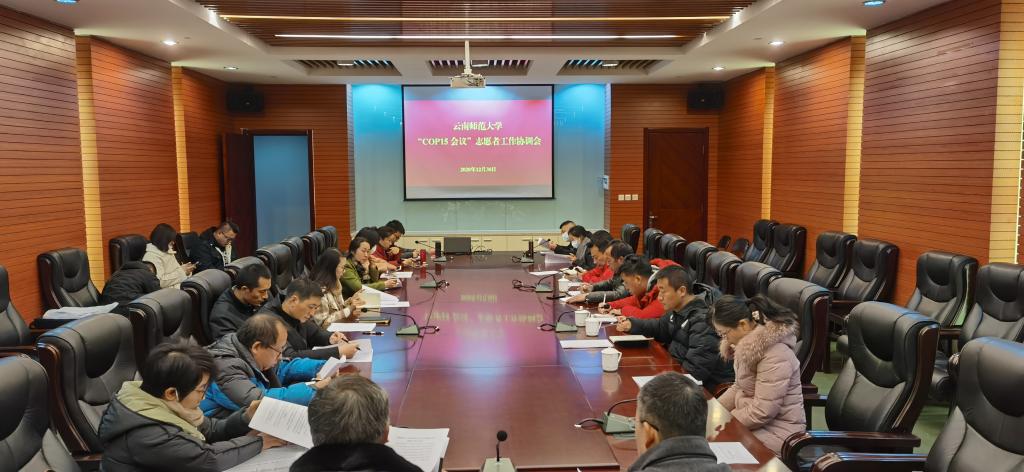 近日,必赢官网召开了437必赢会员中心《生物多样性公约》第十五次缔约方大会(“COP15”会议)志愿者工作协调会。学校党委副书记李宏、副校长蔡金红,校党委办公室、校长办公室、党委宣传部、人事处、校团委等十七个相关部门及学院领导参加了本次会议,会议由李宏副书记主持。