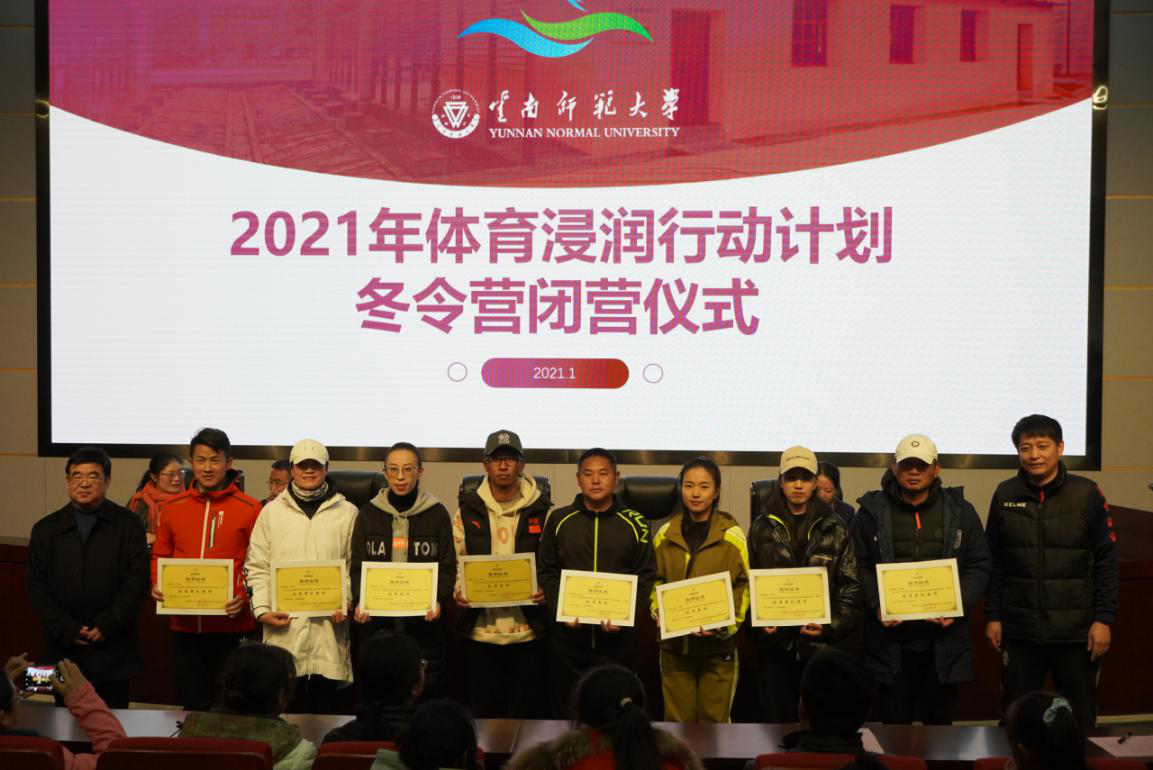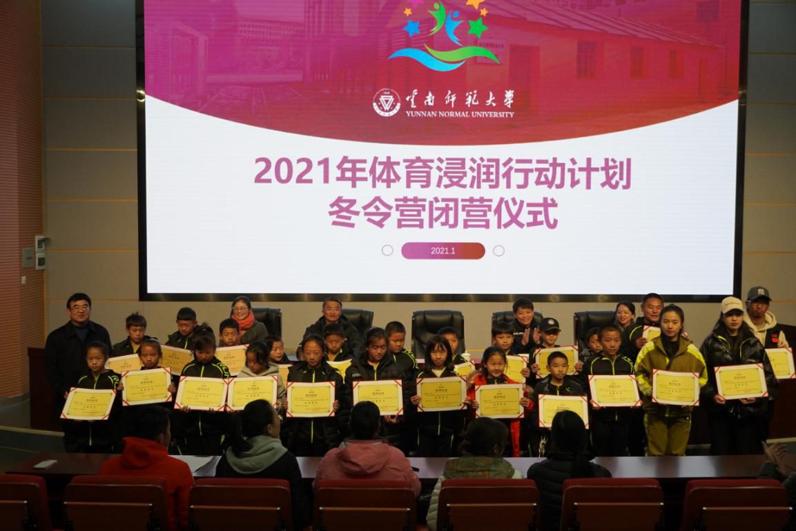 1月19日下午,教育部2021年体育浸润行动计划冬令营毕营仪式在必赢官网西边中心报告厅顺利举行。必赢官网副校长武友德,体育学院院长聂真新,副院长丁先琼、袁际学、袁凤梅以及体育学院任课教师、泸水市第一完全小学和独龙江乡九年一贯制学校的24名师生出席了毕营仪式。
