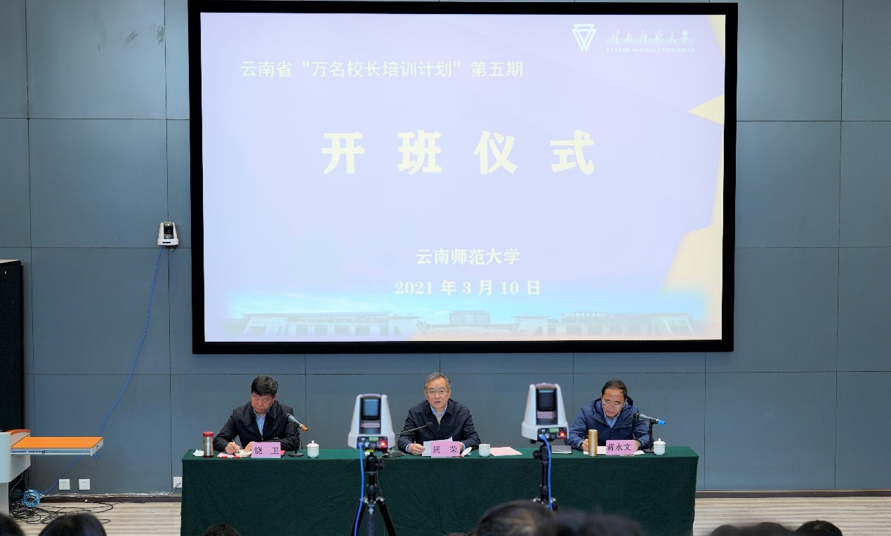 校党委饶卫书记在致辞中表示,实施“万名校长培训计划”,是省委、省政府高瞻远瞩,立足云南实际,加快推动全省教育高质量发展,建设教育强省,“以教育现代化支撑云南现代化”的战略之举。在总结前四期丰富的工作经验基础上,第五期培训将进一步优化名家讲座课程结构,进一步提升专家导读质量,进一步强化学员自我管理,进一步加强教学质量监控和管理。在省委、省政府的坚强领导下,在省委教育工委、省教育厅的有力指导和帮助下,学校与全体学员共同努力,一定能够圆满完成培训任务。