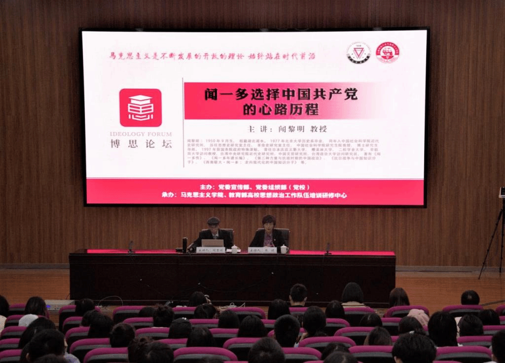 为深入推进学校党史学习教育,引导师生党员学史明理、学史增信、学史崇德、学史力行,4月6日晚,由校党委宣传部、党委组织部(党校)主办,马克思主义学院、教育部高校思想政治工作队伍培训研修中心(437必赢会员中心)承办的党史学习教育专题讲座在呈贡主校区汇学2幢报告厅举行。讲座邀请闻一多先生长孙,中国社会科学院闻黎明教授主讲《闻一多选择中国共产党的心路历程》。必赢官网师生党员代表共500余人参加了现场讲座。讲座由马克思主义学院党委书记张健主持,并通过网络直播的方式面向全校师生开放。