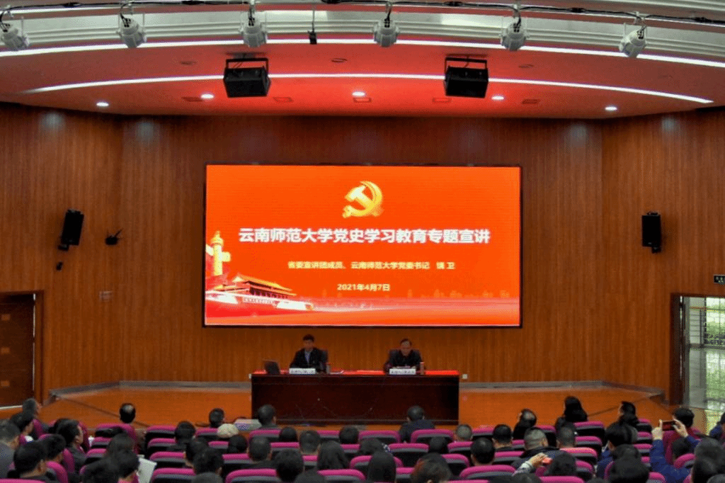 校党委饶卫书记紧紧围绕充分认识开展党史学习教育的重大意义;认真研读党史基本著作,全面了解中国共产党百年奋斗的光辉历程和历史性贡献;深刻把握开展党史学习教育的重点;学懂弄通做实习近平新时代中国特色社会主义思想;从百年党史中汲取奋进新征程的强大力量,为云南开创全面建设社会主义现代化新局面不懈奋斗等5个方面内容,结合党史事件、党史人物、党史文献等具体实例,深入解读了总书记关于党史学习的重要论述,就为什么开展党史学习教育,党史学习教育重点学什么、怎么学、怎么做等重大问题,做了一次全面系统的辅导。饶卫书记强调,在中国共产党百年华诞的重大时刻和“两个一百年”奋斗目标历史交汇的关键节点,全校师生要更加紧密地团结在以习近平同志为核心的党中央周围,以昂扬姿态奋力开启全面建设社会主义现代化国家新征程,以优异成绩迎接建党100周年。