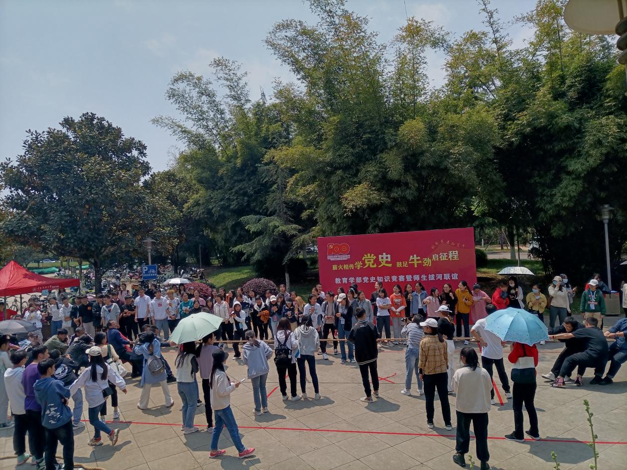 2021年是中国共产党建党100周年,为做好党史学习教育,增强师生的使命感、责任感,48日下午,教育学部在呈贡主校区明德4号楼前举行“薪火相传学党史 鼓足牛劲启征程”党史知识竞赛暨师生拔河联谊。教育学部党委委员、党政领导班子成员以及师生代表共计22支队伍500余人参加了此次活动。