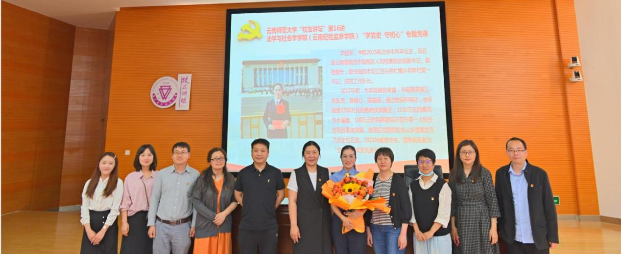 4月15日下午,由437必赢会员中心校友会主办,法学与社会学学院承办的“校友讲坛”(第16讲)暨法学与社会学学院“学党史、守初心”专题党课在明德1号楼301报告厅成功开讲。本期“校友讲坛”邀请的主讲嘉宾是必赢官网法学专业2005级校友、“全国脱贫攻坚先进个人”获得者、彝族女检察官毕起美。法学与社会学学院党委书记王丽萍、院长尤伟琼,校友工作办公室副主任张辰,校团委党支部以及法学与社会学学院全体党员150余人参加活动。