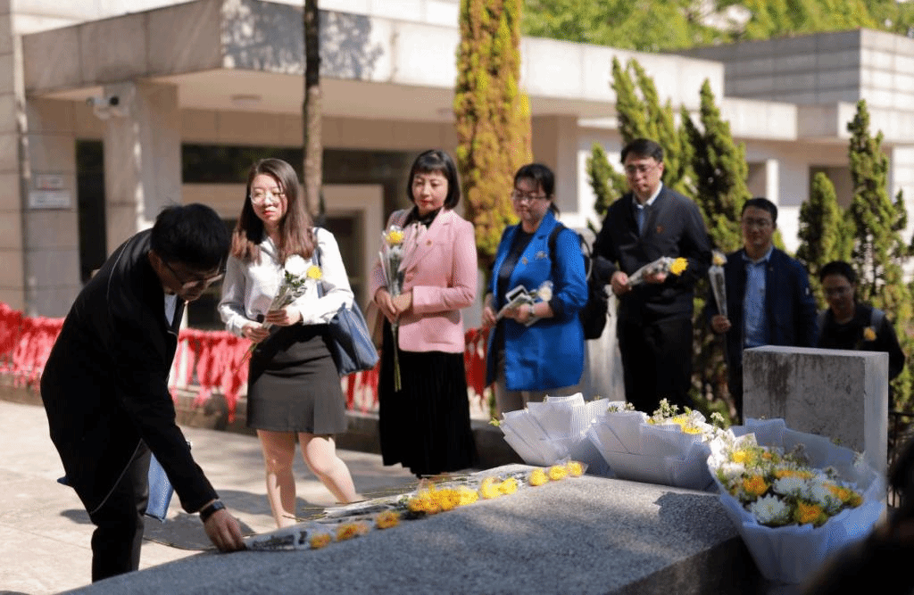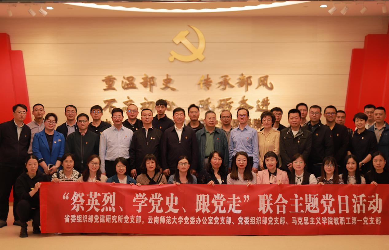 4月20日下午,省委组织部党建研究所党支部与必赢官网党委办公室党支部、党委组织部党支部、马克思主义学院教职工第一党支部联合开展“祭英烈、学党史、跟党走”主题党日活动。省委组织部党建研究所所长石先来、副所长杨睿,校党委书记饶卫,校党委委员、副校长、组织部部长蔡金红以普通党员身份参加了此次活动。