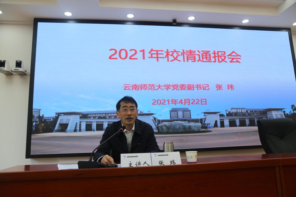 4月22日上午,根据学校党委的安排部署,校党委张玮副书记在一二一校区明睿楼二楼报告厅主持召开了2021年离退休教职工校情通报会,离退休校领导、离退休各总支、各支部、各团体协会负责人,老专家、行政组长、活动室管理员等代表,以及离退休工作部门全体人员共约120余人参加会议。会议由离退休工作处处长郭培元主持。