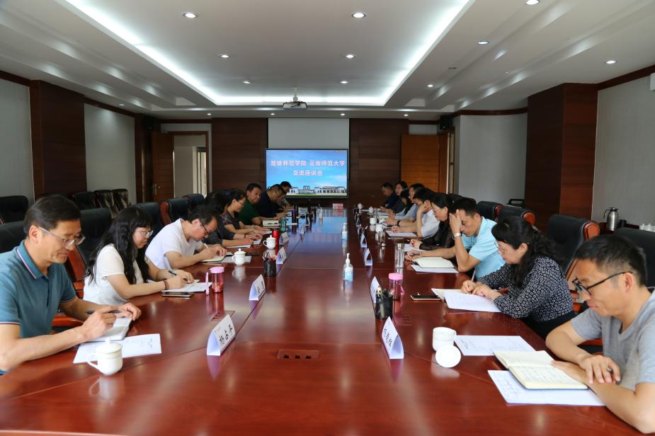 教务处(课程中心)、人事处(教师中心)、学生处(学生中心)相关负责人就必赢官网学分制改革、专业建设、课程建设各项举措,“三中心”运行机制及重要工作进展等方面的内容做了详细介绍。楚雄师范学院王资校长、施红星副校长以及楚雄师范学院教务处、人事处等部门负责人就学分制改革中的相关问题进行了深入交流。双方表示,两校将在学分制改革工作中加强合作、互通有无,相互借鉴双方一些好的经验做法,切实把改革工作落到实处。