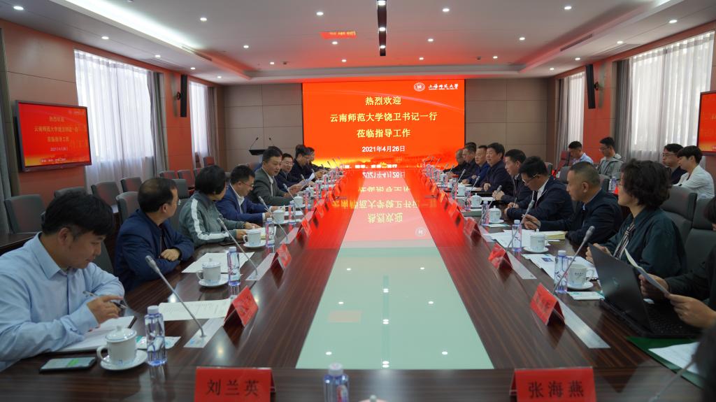 饶卫书记表示,衷心感谢华东师大长久以来对云南师大的大力帮助和支持,希望双方在已有良好合作的基础上,持续推动深化协同发展。梅兵书记表示,两校往来历史悠久、情意绵长,华东师大始终抱有为云南师大和云南地区发展献计出力的情怀初心。梅书记指出,“十四五”时期国家将进一步加大对师范大学的建设力度,希望两校之间通过顶层设计寻求各学科领域的深入合作,同时,通过一系列更加符合战略要求和实际需求的行动措施,携手协作对接“强师计划”“优师计划”等重大国家战略,共同迎接“新师范”建设。