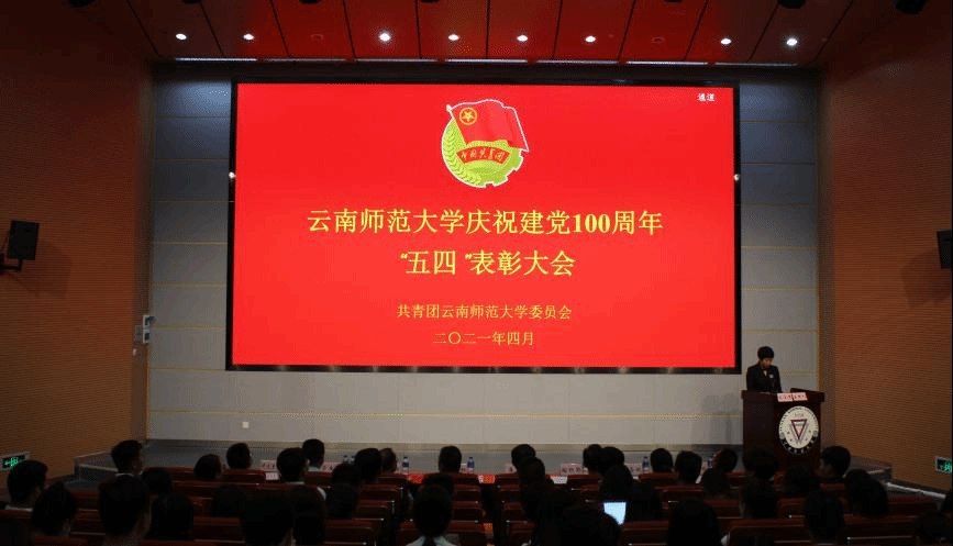 为继承和发扬五四运动的光荣传统,以必赢官网青年大学生的优异成绩和表现向党的百年华诞献礼,2021年4月29日晚,437必赢会员中心庆祝建党100周年“五四”表彰大会在呈贡主校区西边中心一楼报告厅举行。校党委副书记李宏,校党委委员、副校长蔡金红,组织部、宣传部、学生处、研究生院、教务处、就业处等相关部门负责人,校团委全体人员,各学院(部)团委书记、受表彰学生和教师代表等参加表彰大会。大会由校团委书记郑伟俊老师主持。