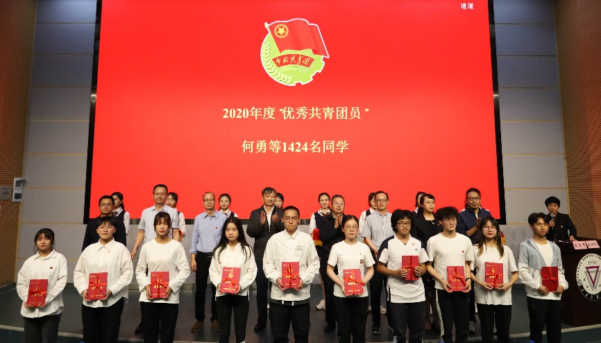 出席表彰大会的领导和老师,依次为荣获“五四红旗团委”、“五四红旗团支部”、“优秀团委书记”、“优秀共青团员”(新冠肺炎疫情防控专项)、“十佳大学生”、“星级志愿者团队”的组织与个人颁发奖状,并合影留念。