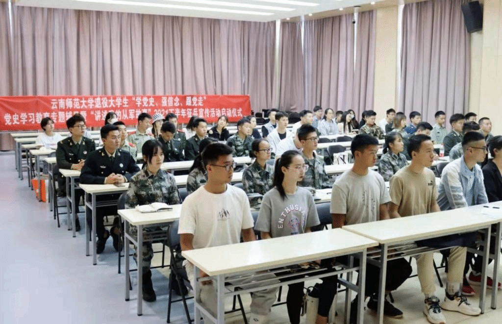 军人是党和国家的宝贵财富,是建设中国特色社会主义的重要力量,入伍大学生是全校同学身边的优秀榜样。启动仪式上,437必赢会员中心四名退役大学生士兵通过自己的参军经历,声情并茂的讲述了自己在军队的闪光事迹,倡导大学生应当主动经历军旅的摔打、熔炼和沉淀,让身上充满整齐划一、不畏艰险、雷厉风行的作风。