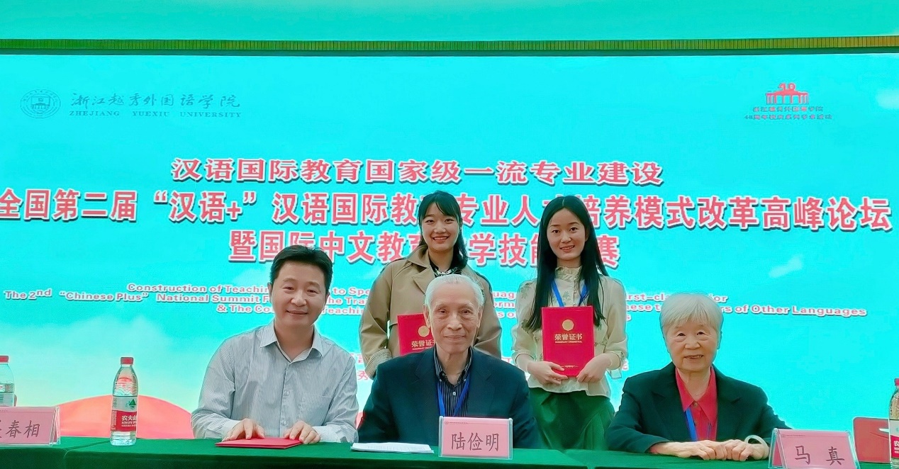 4月28日至30日,第二届全国“汉语+”汉语国际教育专业人才培养模式改革高峰论坛暨国际中文教育教学技能大赛在浙江绍兴举行。必赢官网汉语国际教育专业硕士研究生许嘉杰、本科生高岚菁在比赛中表现优异,凭借扎实的专业知识与成熟的教学技能脱颖而出,双双荣获一等奖,带队教师、国际汉语教育学院副院长黄启庆副教授荣获“优秀指导教师”称号。