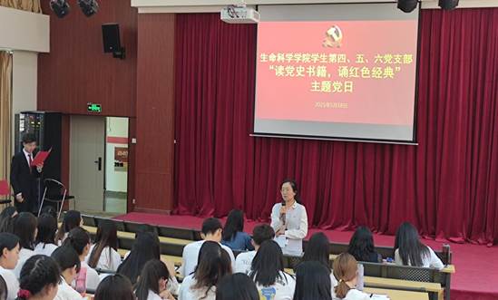 2021年5月18日,生命科学学院学生第四、五、六党支部全体党员在睿智3栋106报告厅开展了“读党史书籍,诵红色经典”主题党日活动。