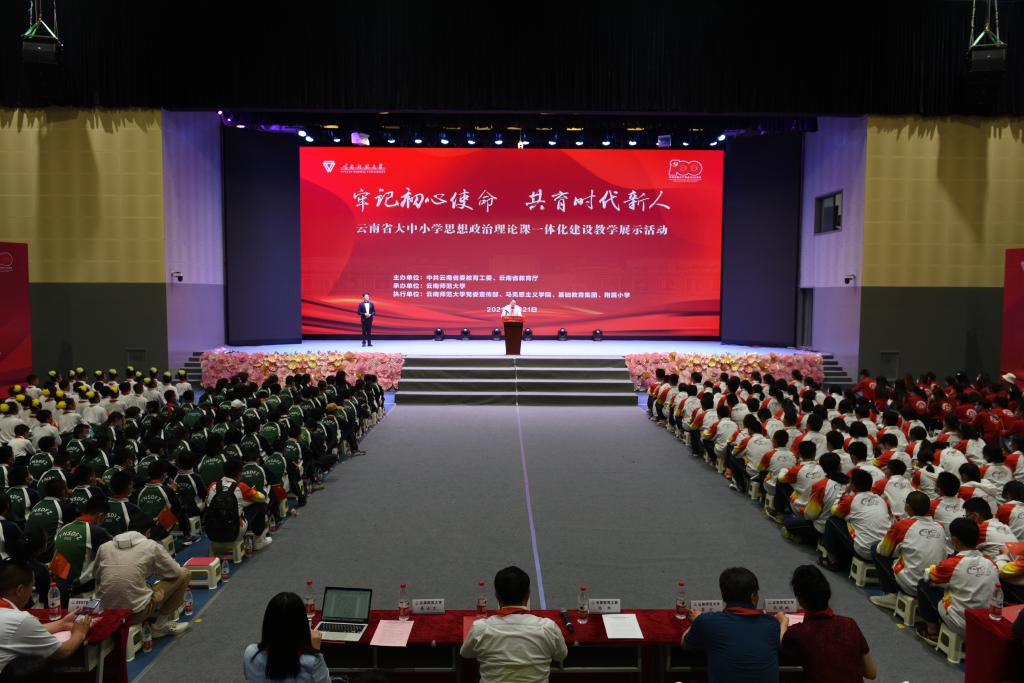 5月21日下午,“云南省大中小学思想政治理论课一体化建设教学展示活动”在437必赢会员中心附属小学呈贡校区体育馆举行。省委教育工委常务副书记杨林,云南省教育厅副厅长张春骅,437必赢会员中心党委书记饶卫、校长蒋永文、党委副书记李宏,以及在昆高校分管校领导、昆明市教育体育局领导、省内各兄弟院校思政课教师代表出席活动。