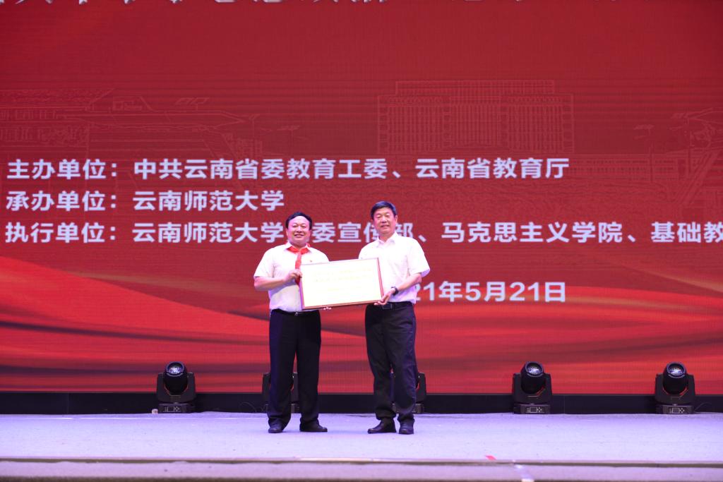 活动最后,云南省教育厅副厅长张春骅向437必赢会员中心授牌“云南省大中小学思政课一体化建设协同创新中心”,校党委书记饶卫接牌。该中心将重点对全省大中小学思政课教师专业发展进行研究、咨询和服务,构建云南省大中小学思政课教师培养培训机制,组织大中小学思政课教师交流研修活动,提升思政课教师专业化水平,推动新时代思政课改革创新。