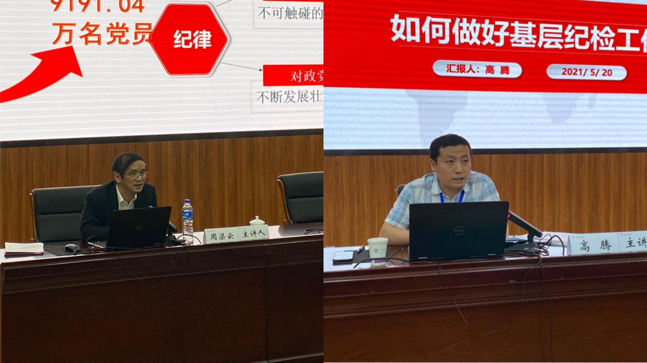 在工作交流环节,体育学院党委纪检委员袁凤梅同志做了纪检委员履职工作交流;西南联大研究所副所长朱俊同志代表2020年度党风廉政建设责任制检查考核优秀单位作监督工作交流。