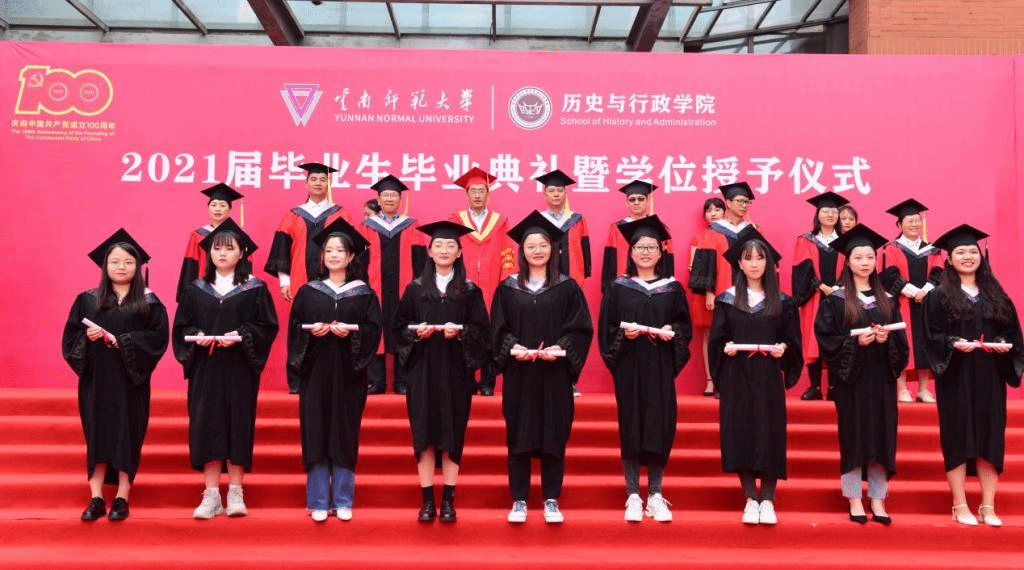 5月27日上午,历史与行政学院于明德楼三号楼前举行了2021届毕业生毕业典礼暨学位授予仪式。校党委张玮副书记,历史与行政学院余明九书记、邹建达院长、杨栋会副院长、保跃平副院长,学院学位评定委员会委员白云教授、硕士生导师张志国副教授、毛丽娟副教授,丁琼博士、闫文仙博士、2021届毕业班班主任及340余名毕业生参加了毕业典礼。毕业典礼由历史与行政学院党委副书记徐振坤主持。
