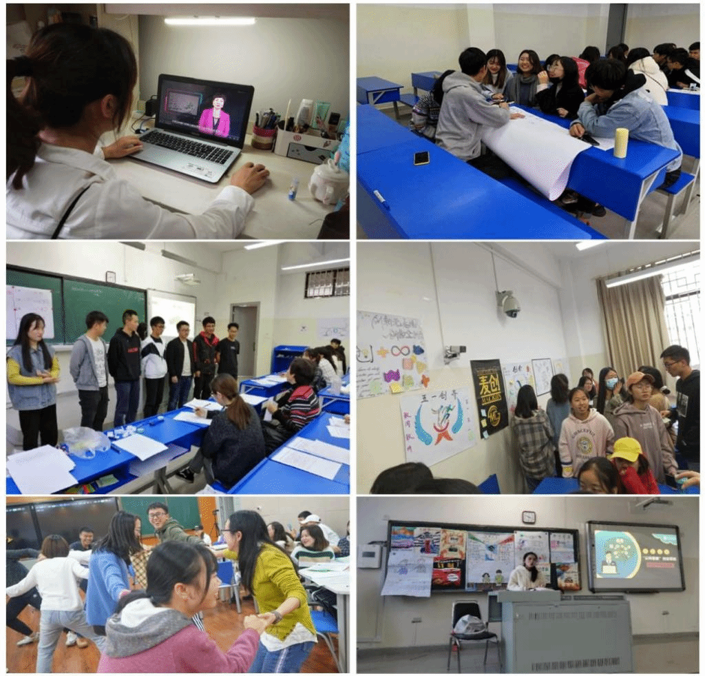 课程自2018 年11月上线运行后, 必赢官网《创新创业教育与实践》(理论)课程全面实施混合教学模式改革,所有开课班级均采取线上线下相结合的教学模式。截止目前,已在校内运行6学期,共325个班级、18786名同学参与课程学习。《创新创业教育与实践》(理论)课程基于《“玩”创未来》创业基础理论、“创践六步法”、以及百森教学法的理论与实践研究,不仅仅探讨创业本身,更将“广义创业”,即创造人生事业为教学核心切入点。为打造以学生为中心的课堂,教学中大量采用小组讨论、项目驱动、头脑风暴、探究教学、体验式教学等互动教学方法,例如寻人游戏、吐槽大会、竞猜、融资大会等互动活动的实施,营造了融洽的课堂氛围,并有效调动了学生学习积极性。教学团队积极推进课程教学改革,课程的混合教学模式获云南省高等学校本科教育教学改革研究项目、校级线上线下混合式一流课程立项,并被认定为云南省首批线上线下混合式一流课程。