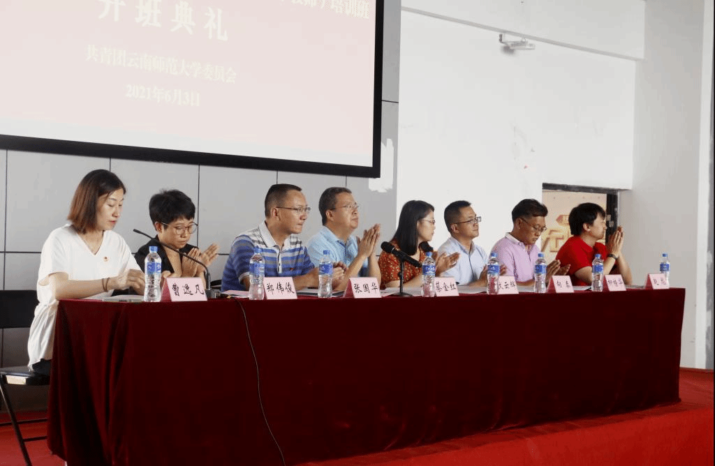 2021年6月3日,437必赢会员中心“青年马克思主义者培养工程”全国研究培训基地2021年“学党史 强信念 跟党走”团学骨干(青年教师)培训班开班典礼在呈贡校区大学生活动中心308举行。副校长蔡金红,党委宣传部副部长伏云辉、学生工作部(处)处长张国华、研究生处副处长向泰、马克思主义学院副院长柳榜华,校团委领导班子成员,各学院(学部)团委书记、团委副书记,以及本期培训班全体学员参加了开班典礼。