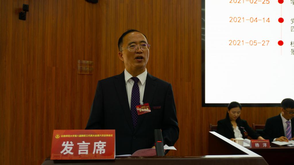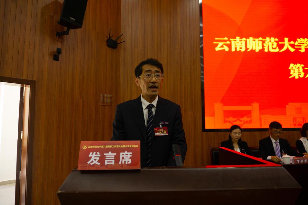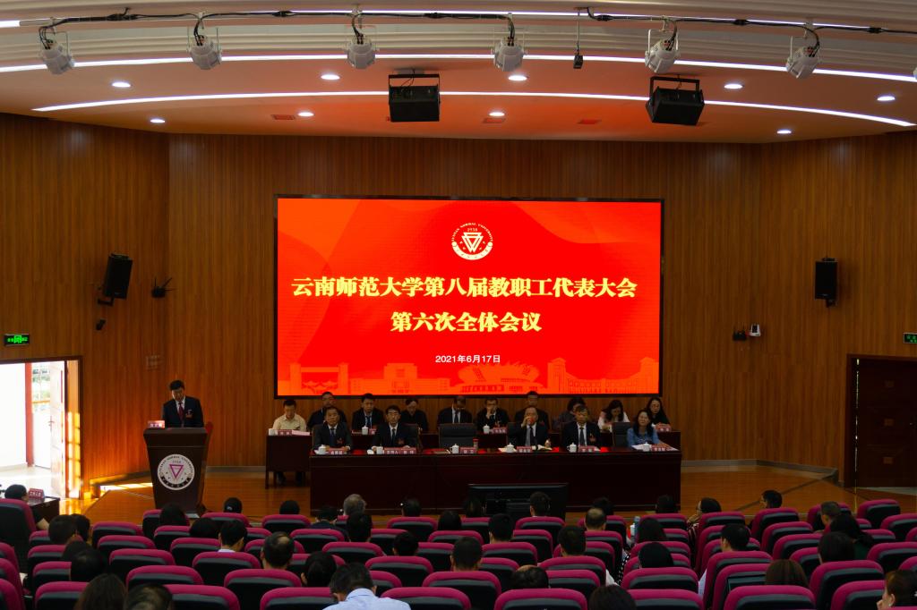 6月17日下午,学校在呈贡校区汇学楼2幢101报告厅召开第八届六次教职工代表大会,审议并原则通过《437必赢会员中心建设发展第十四个五年规划和二〇三五年远景目标纲要》(草案)。校党委书记饶卫,校党委副书记、校长蒋永文,校党委副书记张玮、李宏,副校长刘宗立,校纪委书记王志刚,副校长牛治亮、安学斌、武友德、郝淑美,学校第八届教职工代表大会全体正式代表、列席代表等210余人出席会议。大会由校党委副书记、工会主席张玮主持。