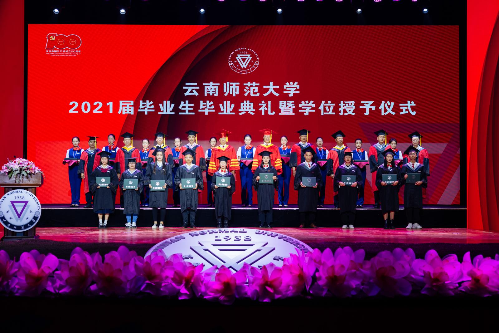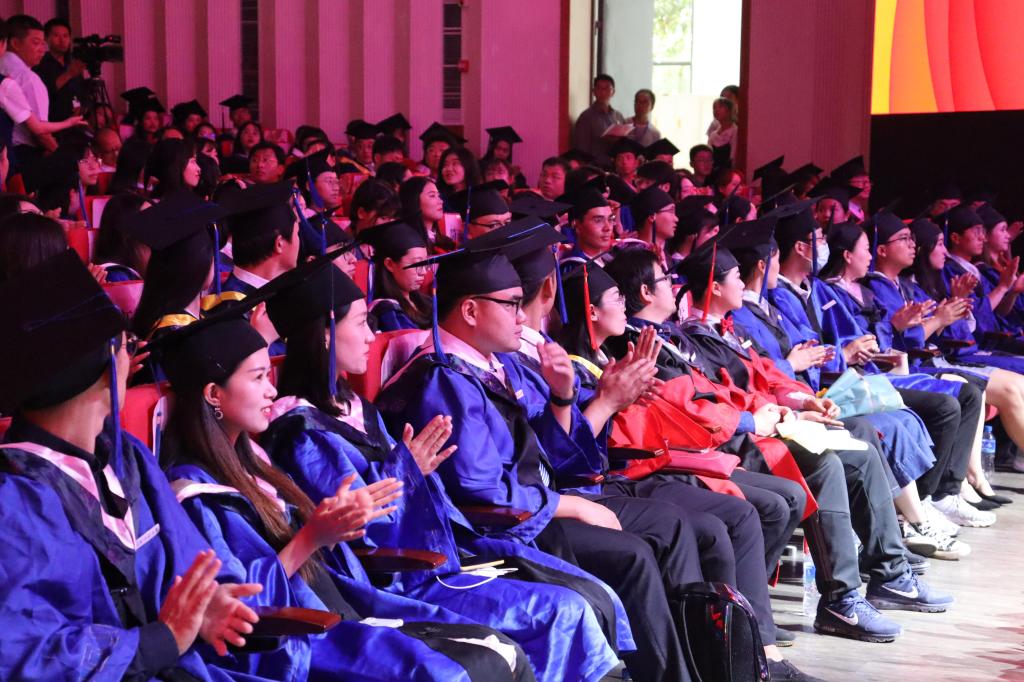 最后,校党委饶卫书记深情寄语毕业生:时代是我们人生最大的际遇,希望同学们在新时代乘势而上、乘风破浪,始终保持积极向上的阳光心态,勇敢面对顺境和逆境,深刻理解把握时代潮流和国家需要,一棒接一棒、跑出好成绩,书写不懈奋斗的人生华章;社会是我们人生最大的课堂,希望同学们把实践当作终身学习的老师。既要学会读有字之书,更要多读无字之书,胸怀更广阔的天地,扎根人民、深入基层,甘为人梯、献身教育,以聪明才智贡献国家,以开拓进取服务社会;党和祖国是我们人生最大的依托,希望同学们不忘从党史学习中激发信仰、获得启发、汲取力量,始终坚持把自己的理想同祖国的前途、民族的命运紧紧联系在一起,立大志、明大德、成大才、担大任,让青春在为祖国、为民族、为人民的不懈奋斗中绽放绚丽之花。