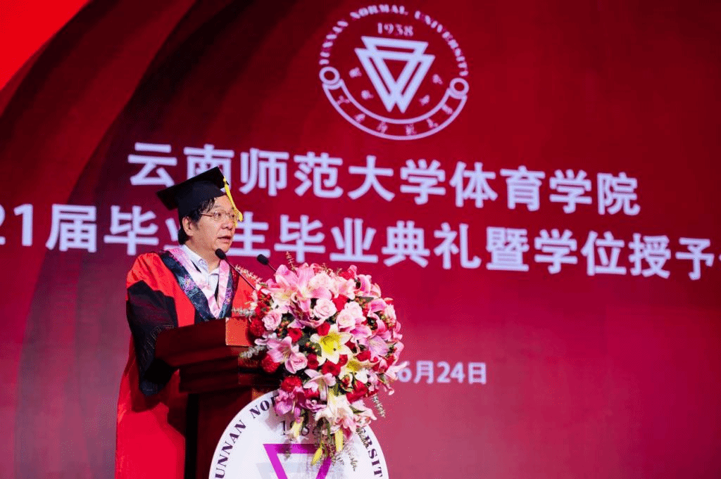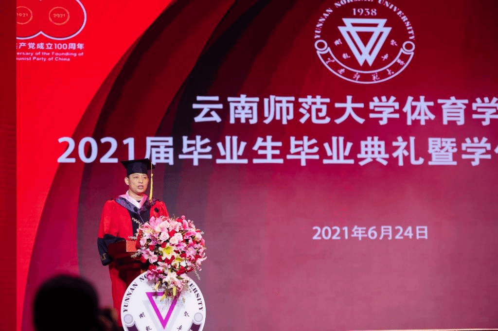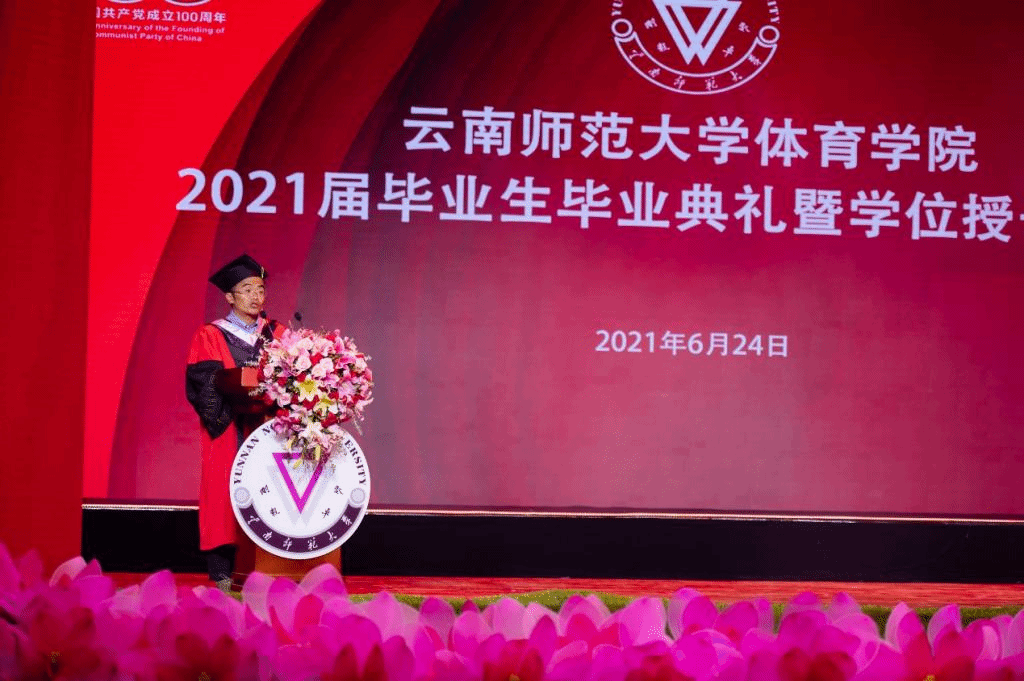 6月24日,体育学院2021届毕业生毕业典礼暨学位授予仪式在呈贡主校区明德5号楼一楼演播厅举行。必赢官网牛治亮副校长、国家教学名师刘坚教授,学院学位评定分委员会委员、领导班子成员、2021届毕业生代表以及师生代表出席本次会议。典礼由体育学院院长聂真新教授主持。