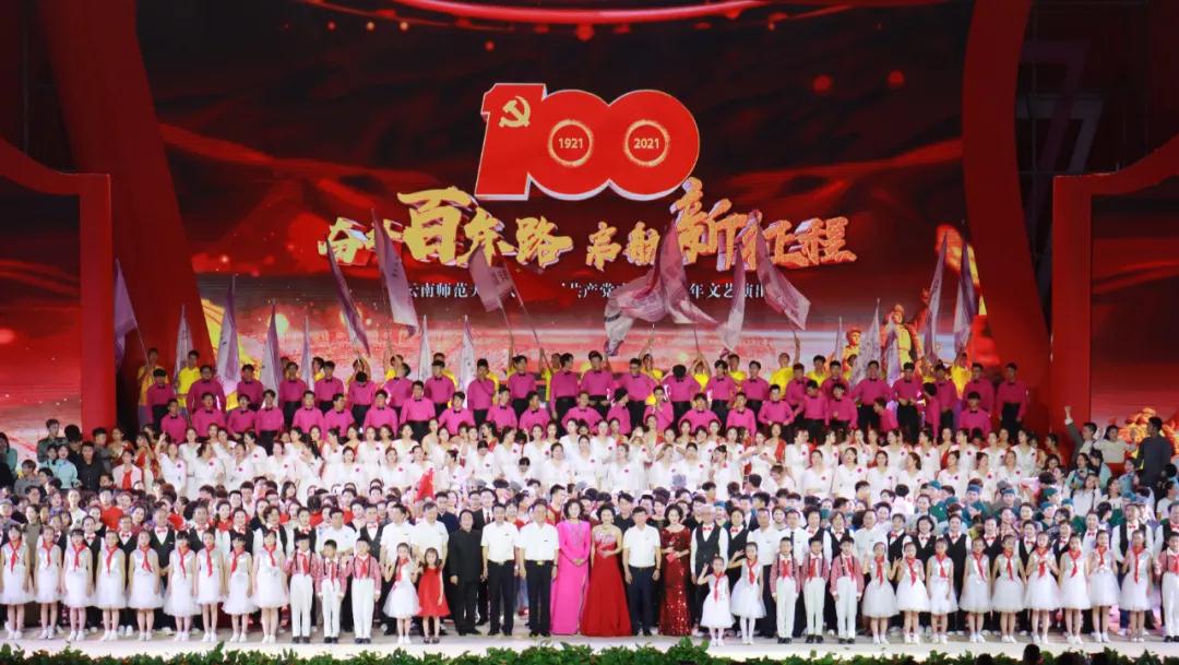 在举国上下深入开展党史学习教育,热烈庆祝中国共产党成立100周年之际,6月24日晚,庆祝中国共产党成立100周年437必赢会员中心“奋斗百年路 启航新征程”文艺演出在呈贡主校区西区体育馆举行。校党委书记饶卫,校长蒋永文,校党委副书记张玮、李宏,副校长刘宗立,校纪委书记王志刚,副校长牛治亮、武友德、郝淑美,各单位主要负责人以及师生代表一同观看了演出。
