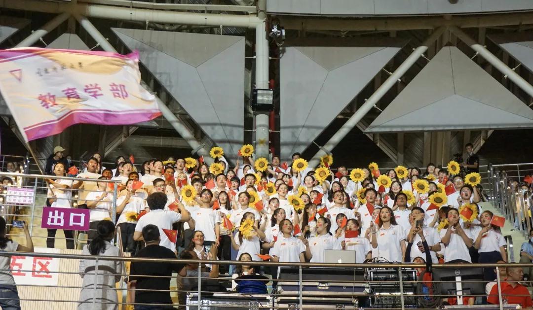 “没有共产党就没有新中国”,嘹亮的歌声响彻体育场上空。大家以声传情,以歌颂党,祝我们伟大的党生日快乐,愿我们伟大的祖国繁荣昌盛!