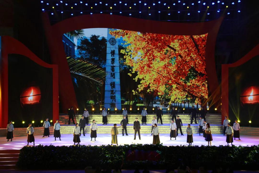 “红烛啊!莫问收获,但问耕耘。”《西南联大组歌》片段《红烛颂》讲述了烽火岁月中,为保存教育的火种,三校师生历经艰辛辗转南迁昆明合组西南联大,在极端艰苦的条件下鼎力治学研究,坚持为国育才的动人场景。西南联大教授闻一多先生拍案而起,发表最后一次演讲,为争取民主与正义献出宝贵生命的故事,让在场师生再次感悟到闻一多先生深沉的赤子情怀。