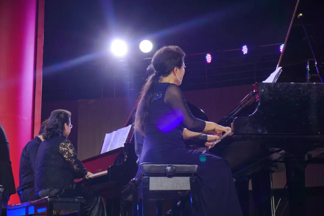 行云流水的音符旋律从8名钢琴演奏者手中流出,时而婉转,时而激昂,他们用琴声述说着对党的恩情,诉说着对鲜红旗帜的热爱。