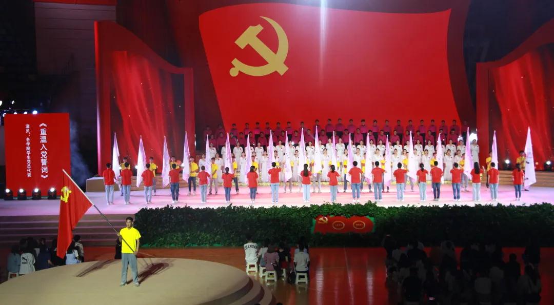 “我志愿加入中国共产党,拥护党的纲领,遵守党的章程……”各学院学生党员代表上台,面对鲜红的党旗,右手握拳,重温入党誓词。铿锵的誓言,是云南师大每一位共产党员永远的坚定承诺。