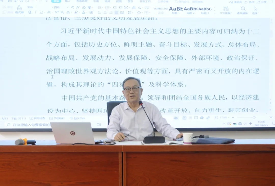 于燕京老师以《中国共产党执政基础学习》为题,系统梳理了中国共产党长期执政的理论基础、物质基础、国防力量、外交成就、工业体系、文教卫体、生态发展等内容。