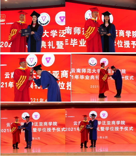 刚毅坚卓启航程,矢志报国践初心。6月26日,泛亚商学院2021年毕业典礼暨学位授予仪式在一二一校区田家炳报告厅举行。校长蒋永文教授、校长办公室主任杨洪副教授、研究生院院长骆华松教授、研究生处处长黄海涛教授、学院全体领导班子成员、研究生导师、教师、2020届及2021届共150名毕业生代表参加了典礼。