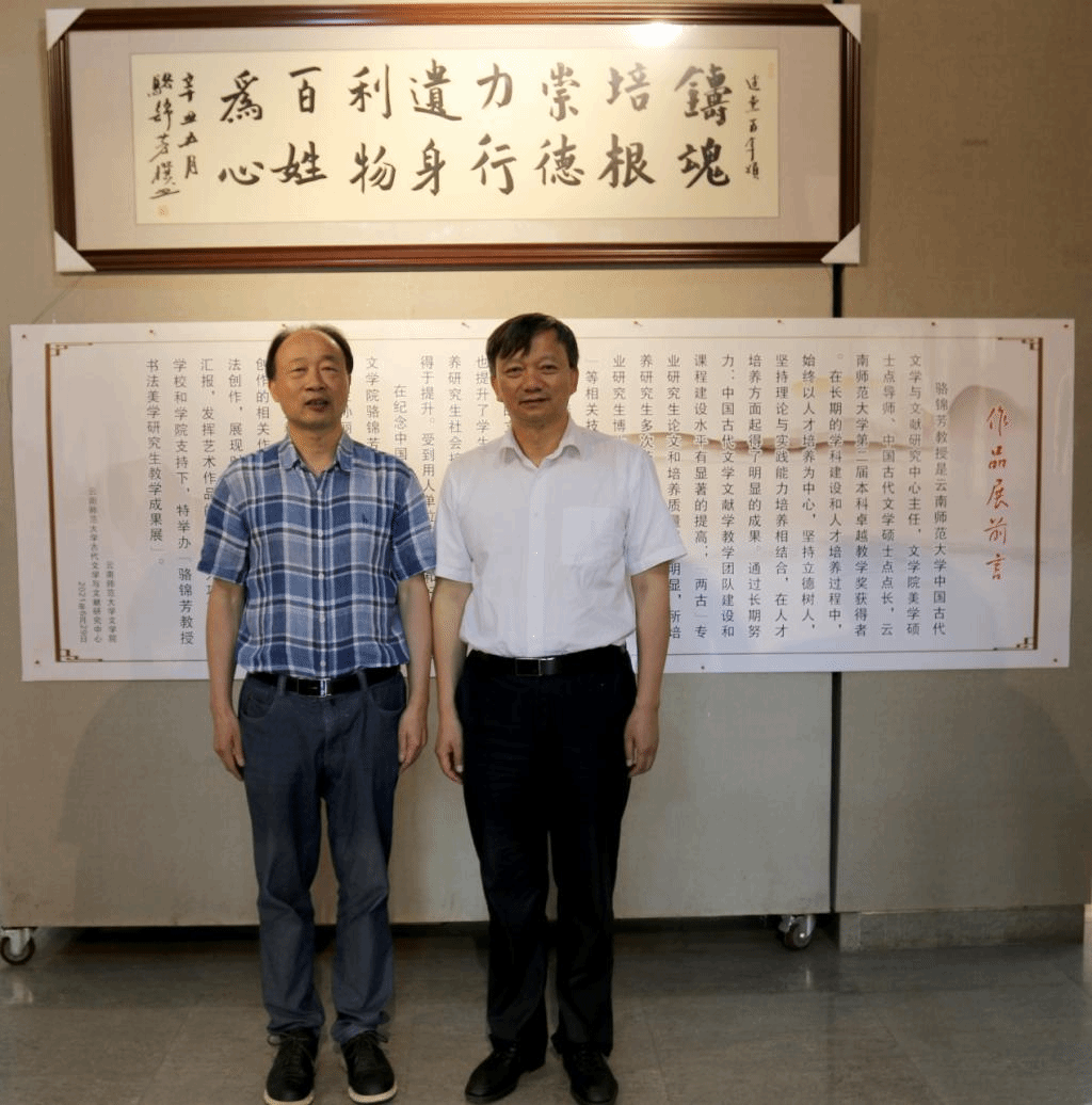 在庆祝中国共产党建党100周年之际,文学院骆锦芳教授举办美学专业研究生教学成果展,展览以建党百年和西南联大为主题,以骆锦芳教授创作的相关作品为主要书写内容,展现时代精神;同时也展览了骆锦芳教授学生在书法美学方面的所学所得。本次成果展于6月30日至7月3日展出,历时4天。
