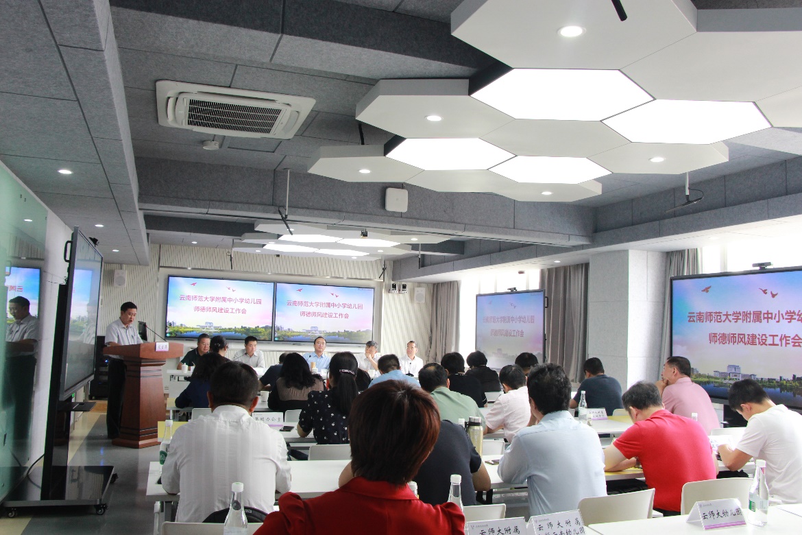 会上,基教集团负责人通报了近期违反师德师风有关事项,附属实验小学、师大实验中学、云南民族中学、附属盘龙幼儿园负责人就师德师风建设工作经验做法、存在问题及措施建议分别作了交流发言。
