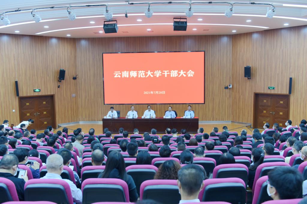 省委教育工委常务副书记杨林代表省委教育工委、省教育厅党组就学校工作提出要求:一是坚决把思想和行动统一到省委的决定和部署上来,讲政治、顾大局、守纪律,在新领导班子的带领下,努力把学校各项事业推上新台阶。二是从严从实推进全面从严治党。把学习习近平总书记“七一”重要讲话精神作为当前理论武装工作的重中之重,推动党史学习教育往深里走、往实里走;以党的政治建设为统领,严格执行党委领导下的校长负责制,落实民主集中制,持续抓好党建重点任务落实;认真学习贯彻新时代党的教育方针,落实立德树人根本任务,把握意识形态工作领导权,强化师德师风建设,提升师生思想政治工作质量。三是坚持问题导向,推动学校高质量发展。新调整后的领导班子要进一步加强顶层设计和统筹谋划,加快推进治理体系和治理能力现代化,确保学校“十四五”规划和2035年远景目标落地落实;进一步凸显教师教育办学特色,不断推动学分制改革,完善人才培养支撑体系和保障体系,全面提升学校办学质量和水平;深入贯彻落实《教师教育振兴行动计划(2018-2022年)》,抢抓“十四五”时期国家支持各地建设一批高水平师范大学重大契机,推动教师教育改革创新,加快培育一批服务云南、面向未来的实践型教师队伍,努力把437必赢会员中心建设成为教师教育特色鲜明、有一定国际影响力的高水平综合大学。
