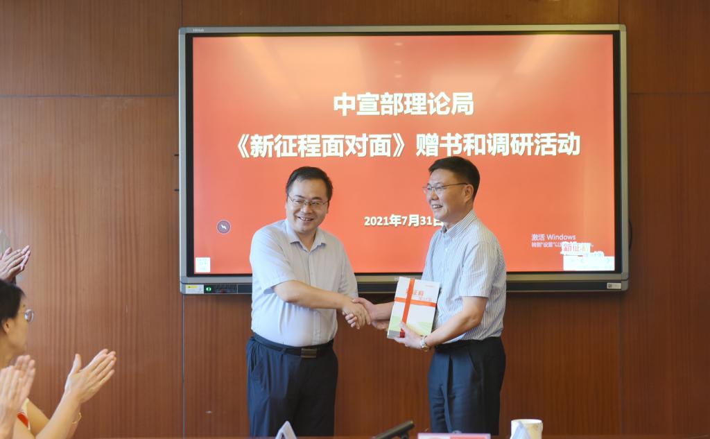 7月31日,中宣部理论局、学习出版社到必赢官网开展《新征程面对面》赠书活动,并围绕2022年通俗理论读物编写工作开展调研。