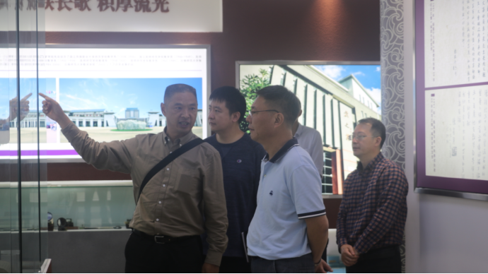 2021年8月17日下午,王德强校长到数学学院调研,实地参观了数学学院院史展陈室,并与学院全体班子座谈。