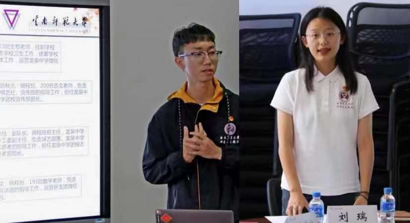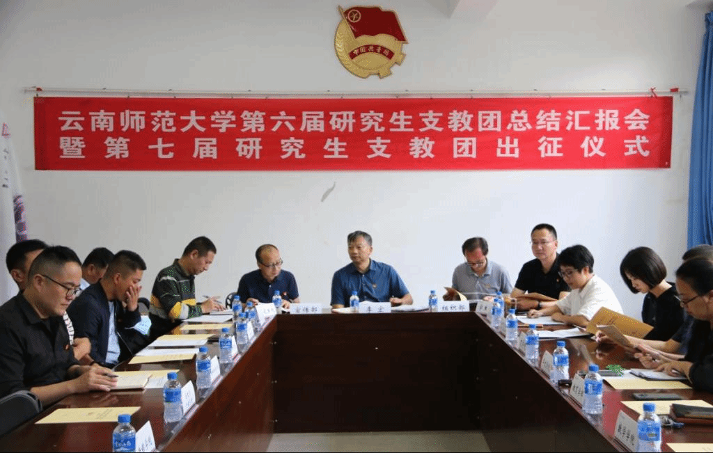 第六届研支团团长韩涛汇报第六届研支团支教工作开展情况,讲述了自己的支教经历和成长收获。在支教中,他们重视基层团建活动,帮助龙泉中学建立了昭通市首家中学团校,通过一系列团建活动帮助同学们树立正确的价值观,得到了当地师生和群众的高度认可。