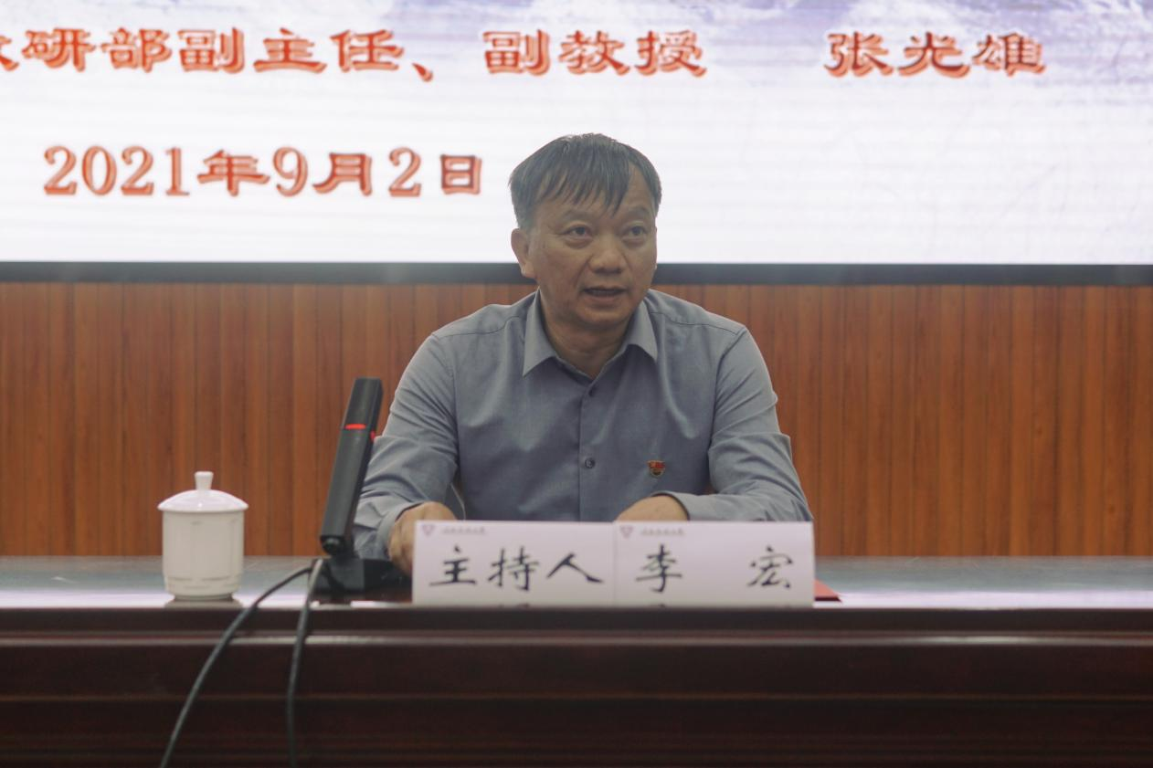 为深入学习习近平总书记在庆祝中国共产党成立100周年大会上的重要讲话精神, 9月2日下午,必赢官网特邀云南省委党校党建教研部副主任、云南省党建研究会特邀研究员张光雄在呈贡主校区汇学楼报告厅,作题为《推进中华民族伟大复兴的政治宣言和行动纲领——深入学习贯彻习近平总书记“七一”重要讲话精神》的专题宣讲。宣讲会由校党委副书记李宏主持,200余名师生代表参加了现场宣讲会。为了满足其他广大师生的学习需求,宣讲报告会还设置了20余个网络直播分会场,各学院、各部门的广大师生员工通过网络直播的方式同步聆听了宣讲会。