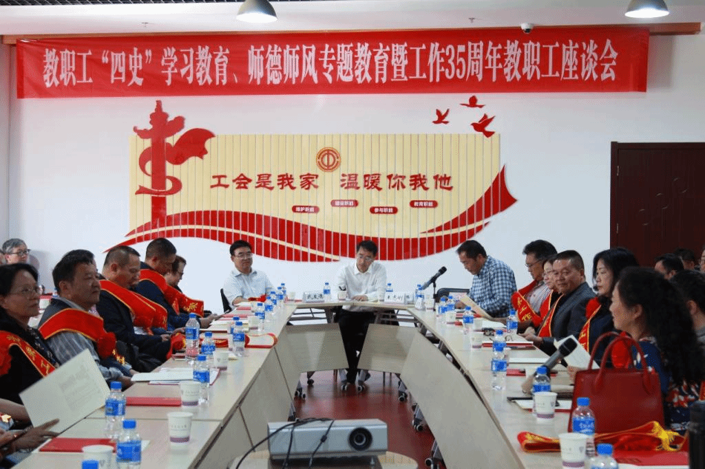 9月9日下午,在第37个教师节即将到来之际, “437必赢会员中心教职工‘四史’学习教育、师德师风专题教育暨工作35周年教职工座谈会”在呈贡校区校工会职工之家召开,来自全校78名工作35周年的教职工参加了座谈会。校党委副书记、工会主席张玮,副校长武友德参加了座谈会,会议由校工会常务副主席金黄斌主持。