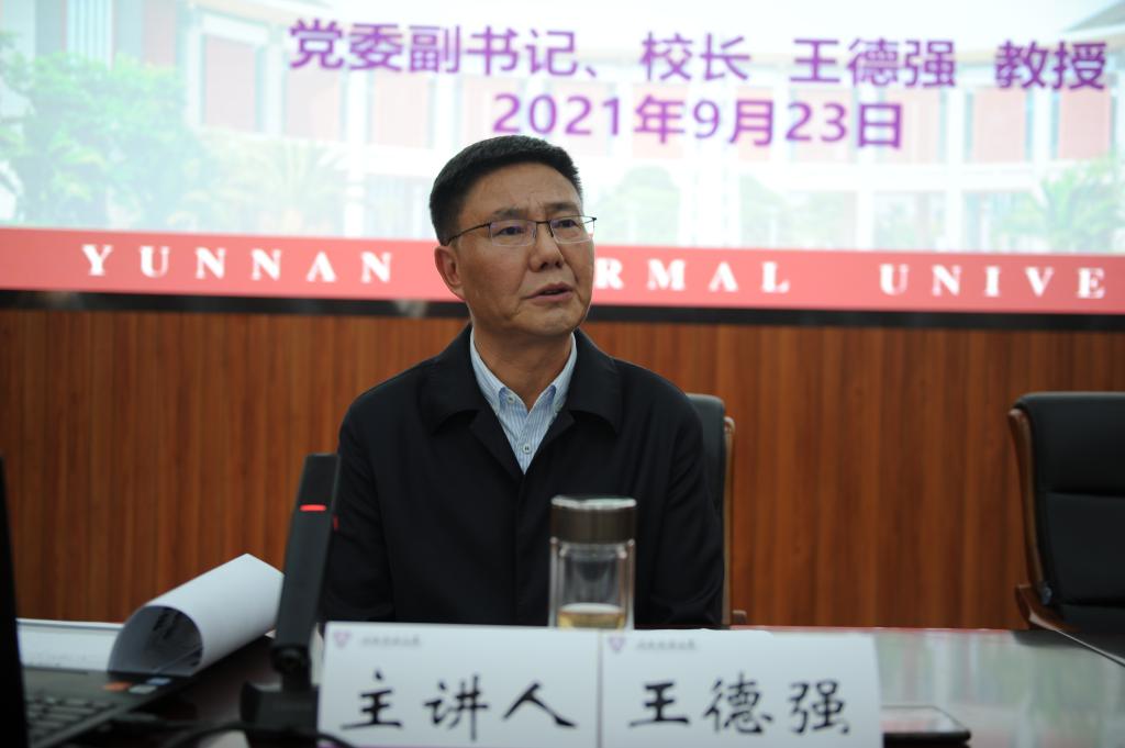 结业仪式前,校长王德强作了题为《悟思想 谋发展 开新局 扎实推进高质量发展新征程》的学习辅导。王德强校长结合习近平总书记在庆祝中国共产党成立100周年大会上的重要讲话精神和习近平总书记关于教育的重要论述,从学校发展实际出发,围绕学科建设、专业建设和人才培养质量等方面,通过与省内高校和全国地方师范院校的对比,运用详实的数据,全面深入地分析了学校当前面临的发展形势和发展任务。王校长指出,当前形势在变、任务在变、工作要求也在变,学校的高质量发展一定要走特色路、品牌路,一定要融入国家战略、服务地方发展、立足区域定位,坚持内涵发展,注重凝练特色,特别要在培育特色学科上花大力气。王校长希望各单位准确把握学校高质量发展目标,清醒认识学校发展面临的困难与挑战,善于抢抓机遇,提前科学谋划,用发展的办法解决发展中的问题,真正做到正视差距、抢抓机遇、科学谋划、狠抓落实,着力推动学校综合改革向纵深推进,加快建设教师教育特色鲜明的高水平综合大学。