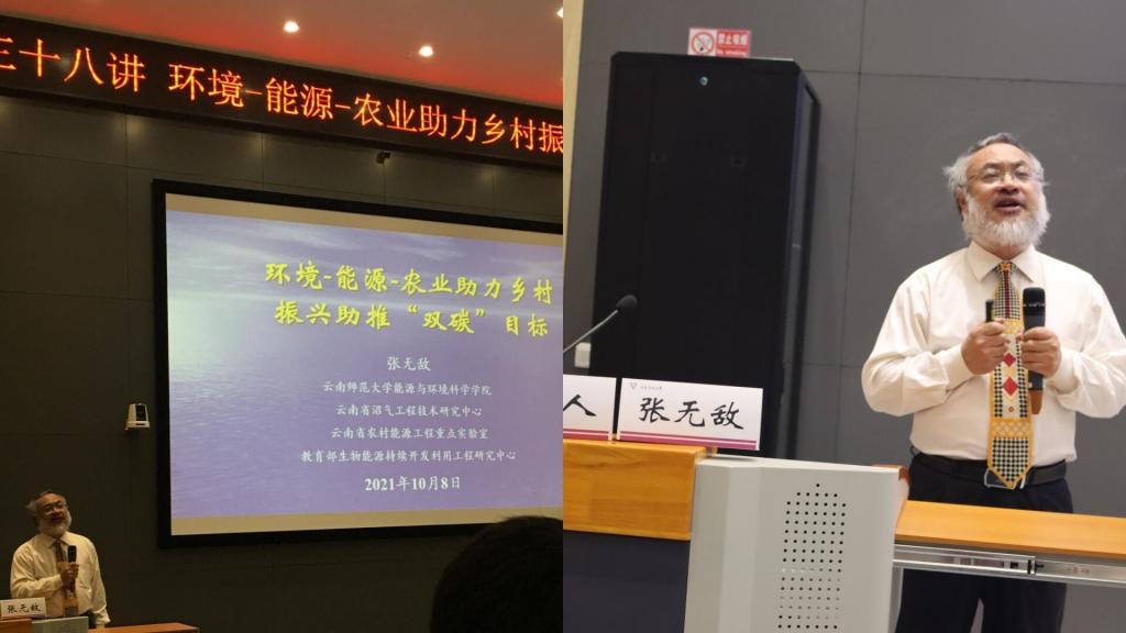 值联合国《生物多样性公约》第十五次缔约方大会在昆明召开之际,10月8日晚,由学生处承办的第三十八讲云师讲坛,邀请了被同学们称为“大胡子教授”的张无敌老师为必赢官网师生做了以“环境—能源—农业助力乡村振兴助推‘双碳’目标”为主题的报告,分享了他多年来在教学科研实践中,如何改善生态环境,保护生物多样性的一些思考和启示。此次讲座由能源与环境科学学院党委副书记范荣康主持,来自各学院(学部)、万名校长培训班的600多名师生通过网络直播观看和现场聆听了本次讲座。