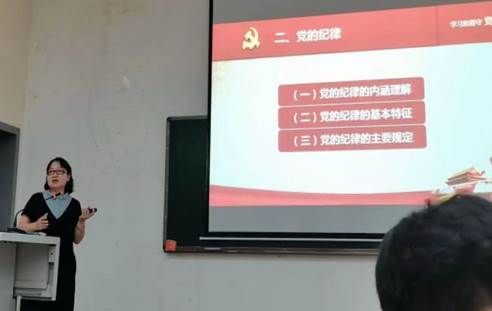 院长范丽仙同志结合习近平总书记“七一”重要讲话精神为入党积极分子培训和学生第九党支部全体党员进行了党的组织原则及党的纪律专题讲解,让学生们认识到作为一名党员要自觉遵守党的组织原则,严格恪守党的纪律,并且要不断加强党的理论学习,将其践行到学习和生活当中。