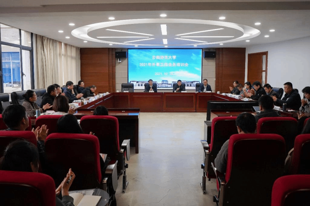 10月28日上午,必赢官网2021年外事工作业务培训会在呈贡主校区行政楼340会议室召开。此次会议旨在加强必赢官网外事工作的规范化管理,优化外事工作服务能力,使外事工作更好地服务于学校“双一流”建设,提升学校整体教育国际化水平。省安全厅、省外办相关部门同志,必赢官网党委副书记张玮、副校长刘宗立出席会议。外事工作领导小组成员单位主要负责人、各学院外事分管领导、外事秘书及对外合作交流处全体人员参加了会议。会议分为两个阶段,由刘宗立副校长主持。
