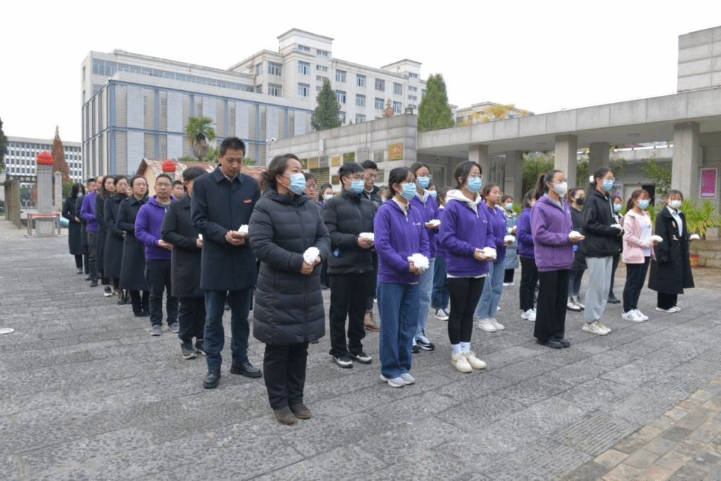 悼念仪式上,西南联大博物馆专职讲解员王齐重温了习近平总书记考察调研西南联大旧址时的重要指示,回顾了“一二·一”爱国民主运动的经过及其在中国革命史上里程碑式的意义。在全体肃立默哀行鞠躬礼后,全体人员列队瞻仰四烈士墓,并向闻一多先生衣冠冢和四烈士墓敬献师生们亲手制作的小白花,以表达对烈士们深深的的敬仰悼念之情,寄托了对革命先烈无限的哀思。
