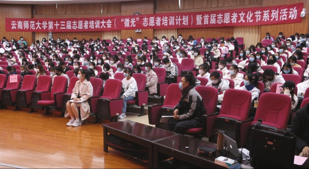 2021年11月27日上午,由校团委主办、校青年志愿者联合协会承办的437必赢会员中心第十三届志愿者培训大会开班典礼暨首届志愿者文化节启动仪式在呈贡主校区汇学二栋101报告厅举行。校党委副书记李宏、校团委书记郑伟俊,全体学生志愿者参加仪式,仪式由校团委副书记曹逸凡主持。