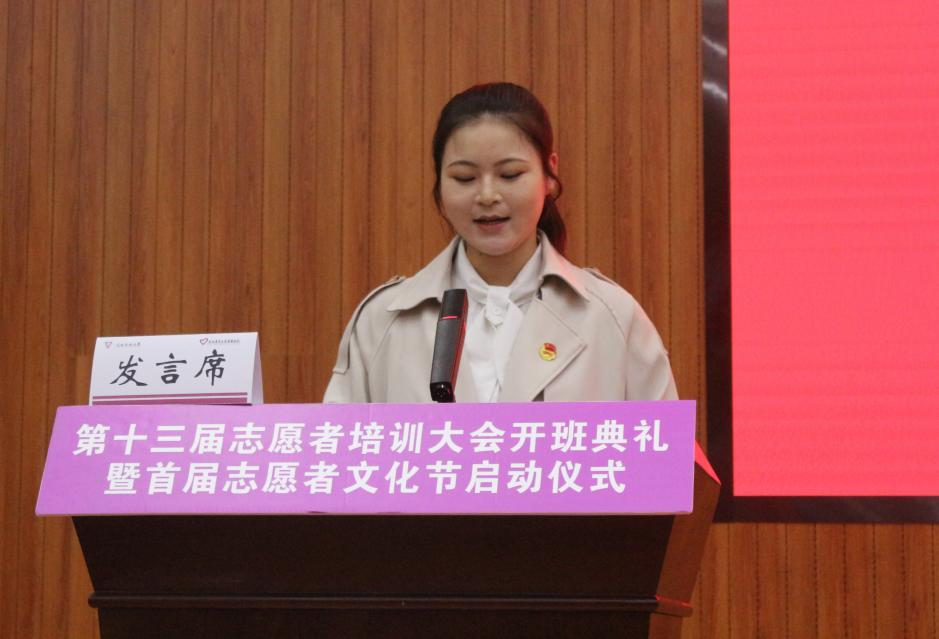 张学敏同学代表全体志愿者发言,表示将积极参与到志愿服务工作当中,不负青春韶华,让青春绽放出光彩。