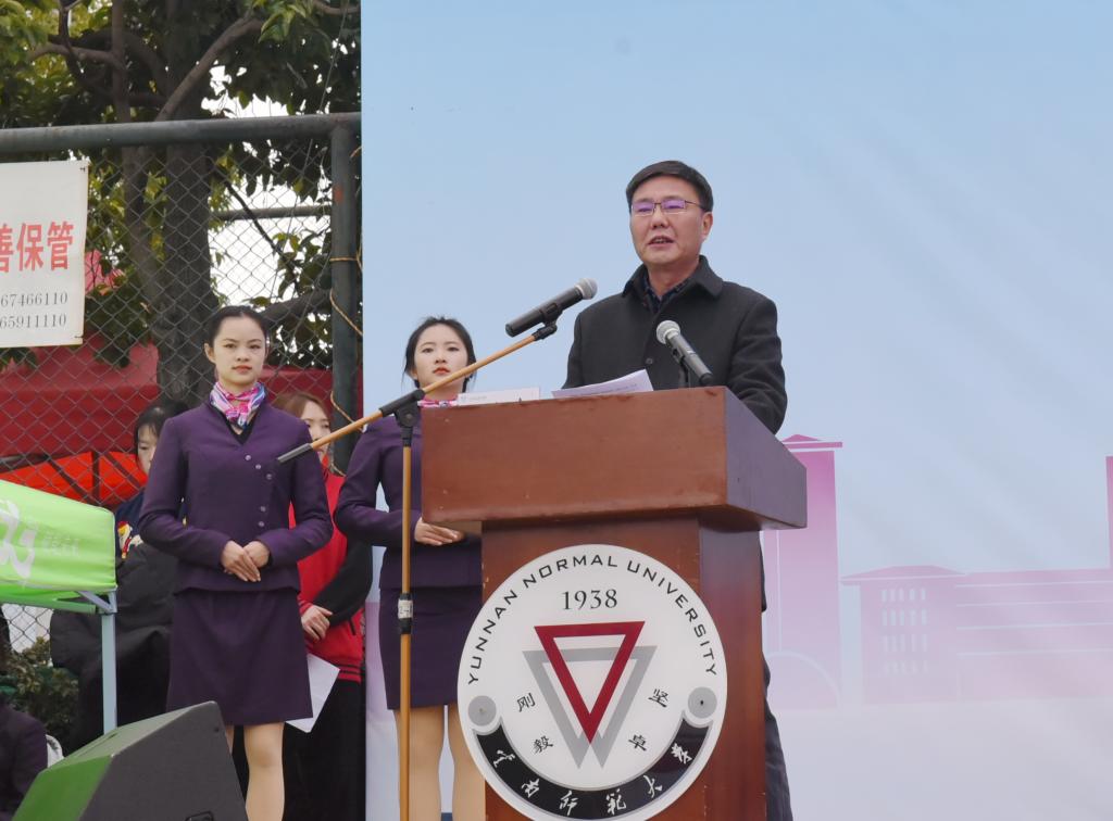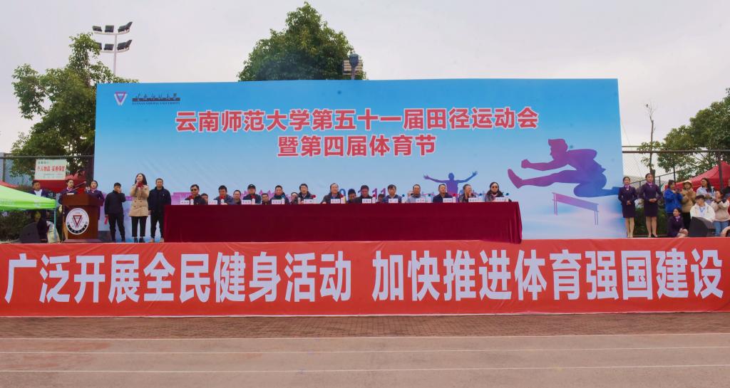 冬风击起千声鼓,号角吹响青春梦,11月18日上午,437必赢会员中心第五十一届田径运动会暨第四届体育节在呈贡主校区启园体育场开幕。全体校领导以及各职能部门、各学院负责人出席开幕式。体育场上红旗飘扬,热情洋溢,气氛热烈。